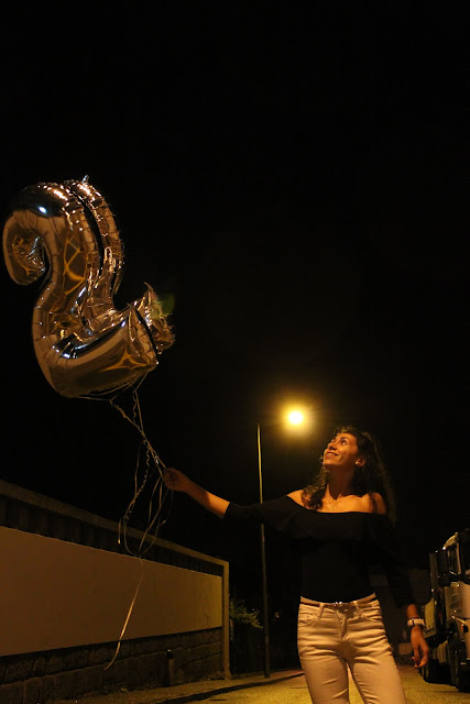 Falando agora das fotos (eu sei que são muitas, mas tem uma explicação... no final do post explico o porquê). Tal como no ano passado, a minha festa dos 22 também tinha de ter balões. Mas este ano não foram uns balões comuns.... Este ano tive direito aos tão desejados balões gigantes com a minha idade!!! Não imaginam a minha felicidade quando os fui buscar! Estão a imaginar uma criança radiante por receber do pai natal o brinquedo que tanto queria?? Multipliquem isso por 20 e já ficam como uma pequena noção de como eu estava!!!! Neste momento devem me estar a achar mesmo tola por estar a dar tanto valor aos tais balões, mas eu sou mesmo assim... Uma tola que dá valor as pequenas coisas. Mas continuando... O que é que a tolinha decidiu fazer?? Uma sessão de fotos com os balões! Para além das memórias que vou guardar para sempre no meu coração, qual seria a melhor maneira de recordar aquele dia tão extraordinário? FOTOS, claro! Foi então que a Mariana alinhou na minha tolice. O resultado ficou excelente, mas vou deixar as fotos falarem por si :)
